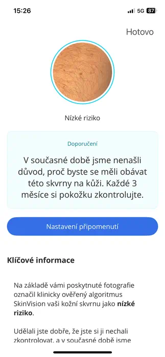 Aplikace SkinVision slouží jako nástroj pro kontrolu kožních znamének a nenahrazuje diagnózu
